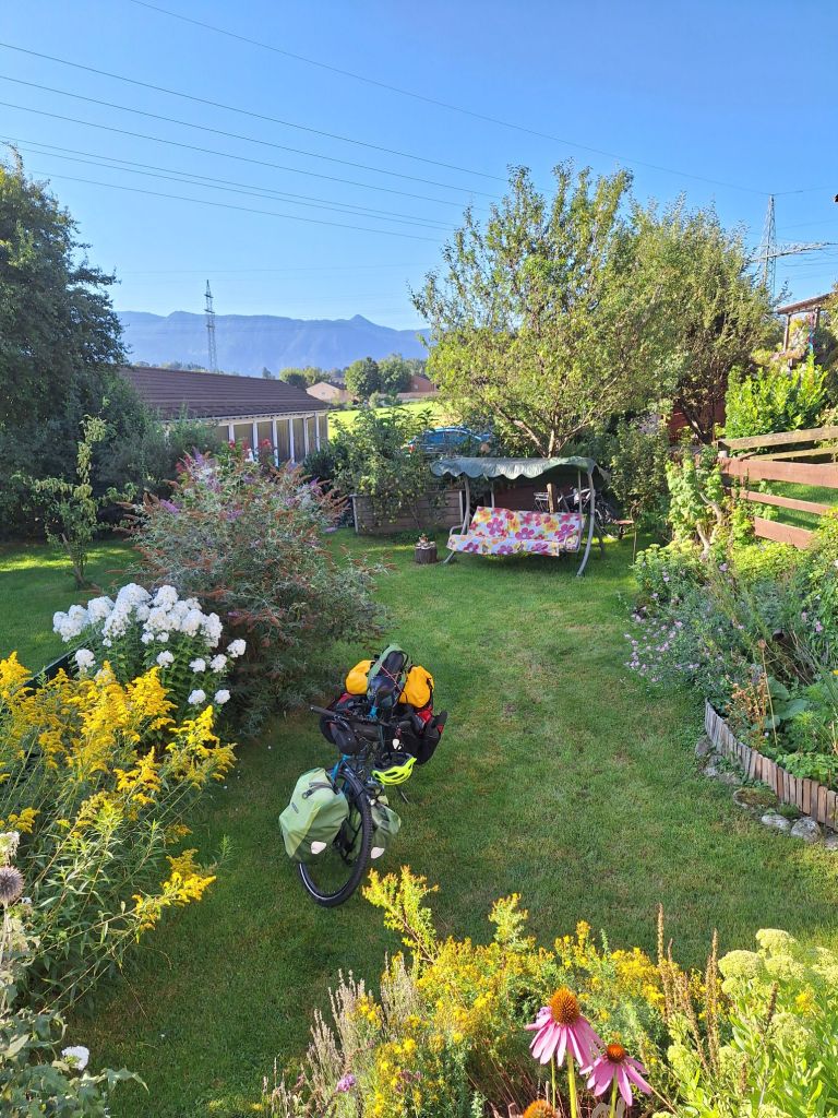Obendrein kam meine Mutter auch noch zu Besuch, da es ja nur 40 Minuten mit dem Auto sind aus meinem Heimatdorf. Sie brachte mir mit meinem neuen Reisepass zudem ein sehnlichst erwartetes Dokument, da mein vorheriger leider kommendes Jahr ausläuft. Insgesamt ein sehr, sehr schöner Abend mit Familie und Freunden, der einen glücklich ins Bett fallen ließ. Schlaf war natürlich auch dringend von Nöten für die geplanten knapp 90 Kilometer am nächsten Tag. Ich stellte den Wecker auf halb 7. Früh los war Trumpf aufgrund der angekündigten Hitze in Verbindung mit wolkenlosem Sonnenschein.