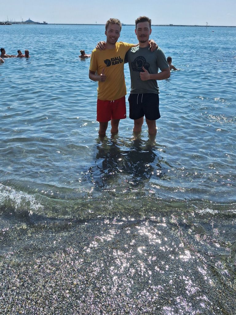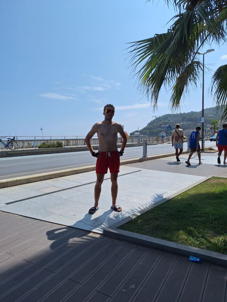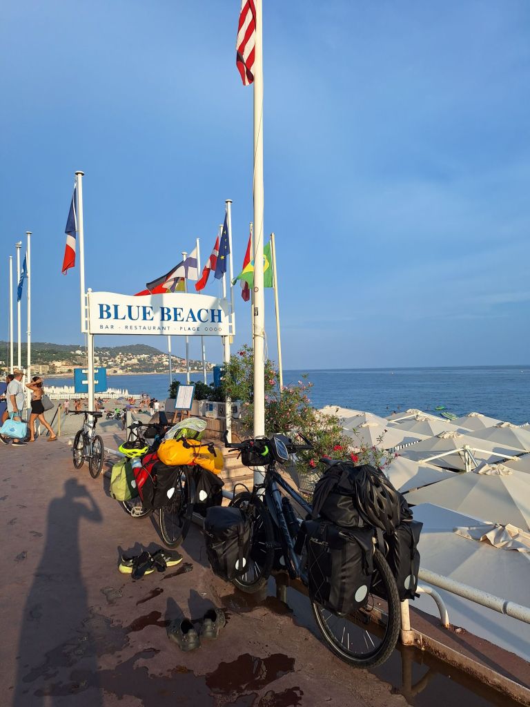 Das Schild läutete die legendäre Strandpromenade von Nizza ein. Nach der ereignisreichen und heißen Etappe ließen wir uns nicht lumpen, einmal ins Meer einzutauchen, bevor es zu unserem Gastgeber Stephane ging, ca. einen Kilometer vom Strand weg in ein ruhiges Wohnviertel. Stephane war auf ein „Rendez-vous“ verabredet, sodass er uns den Schlüssel gab und uns alleine ließ in seiner Wohnung – was für ein Vertrauen! Stephane erklärte mir alles, da Jannick leider (vielleicht noch) kein Wort Französisch kann. Ich konnte gottseidank – dafür, dass das Abitur acht Jahre her war – problemlos mit Stephane kommunizieren, wodurch dieser mir seine Anerkennung preisgab. Er habe bisher wenige Radreisende empfangen, die so gut Französisch können – ich fühlte mich geehrt!