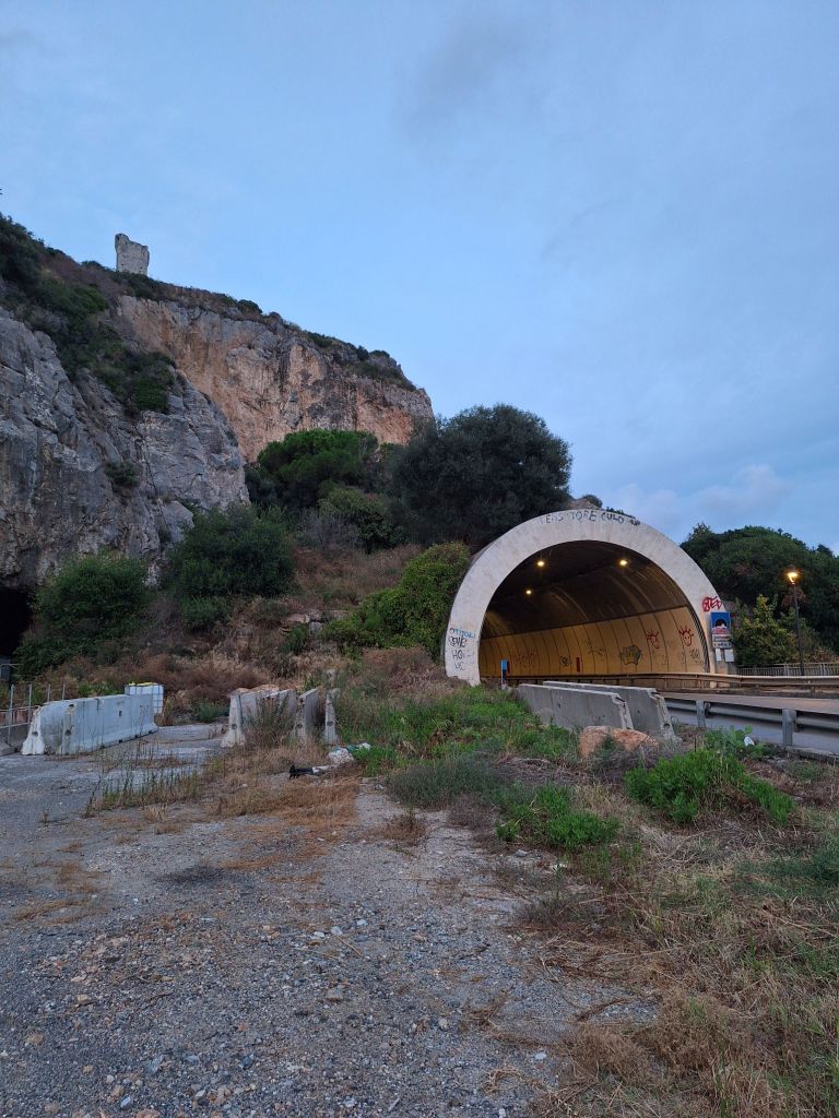 Die Hauptstraße verlief obenrum als Passstraße. „100, maybe 150 extra heighmeters.“ Puhh – bei der Hitze eine Hiobsbotschaft. Kurz war ich enttäuscht, anschließend nahm ich es jedoch sportlich und brannte darauf, die extra Höhenmeter zu „killen“. Dementsprechend gab ich Gas und war schnell auf Passhöhe, ehe Jannick hinterher kam. Die anschließende Abfahrt konnte aufgrund der vielen Schlaglöcher jedoch nur semi genossen werden. Im Gegenteil, bei einer Unebenheit verabschiedete sich sogar meine Flasche aus der Halterung. Nicht ungefährlich bei über 30 Stundenkilometern. Eine kurze Badepause im Meer kam anschließend gerade recht. Immerhin gab es anschließend bis zum finalen Anstieg einen durchgehenden, komfortablen Radweg, garniert mit einigen unbeleuchteten Tunneln über mehrere hundert Meter. Da wäre ein Licht natürlich von Vorteil, lieber Jannick 😉 Spaß beiseite…