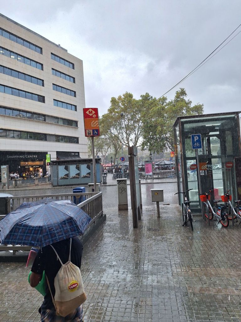 Als ob Barcelona für uns unter keinem guten Stern stehen sollte auch noch das: Am Vormittag unseres freien Tages goss es wie aus Kübeln. Wir saßen bei Kaffee im McDonald’s nebenan und saßen die Naturdusche aus. Hoffentlich behielt der Wetterbericht Recht, dass es ab dem Mittag besser werden sollte…