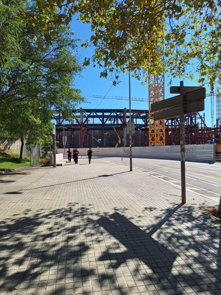 Umso größer war die Enttäuschung, als dieses von außen eher einer riesigen Baustelle glich – keine Stadionästhetik. Eventuell müssen wir in zwei Jahren nach Fertigstellung einfach nochmal herkommen. Wir schoben nur kurz unsere Räder über den Nebenplatz vom Stadion mit Museum und Barcelona-Café. Hoffentlich komme ich dann bald mit dem Estadio Santiago Bernabéu mehr auf meine Kosten als Fußballfan 😉