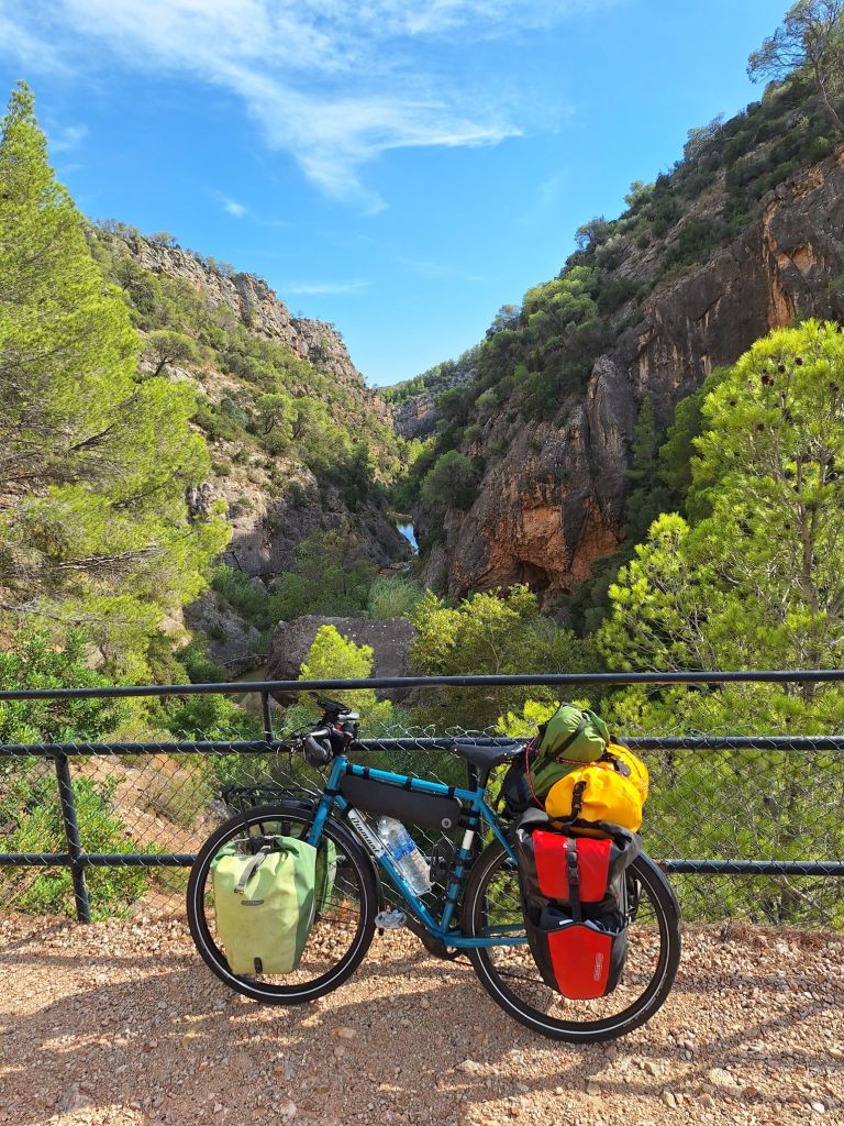 Wir einigten uns darauf, dass jeder mal für sich weiterfährt und wir dann einfach schauen. Ich fuhr also einfach mal meine Route weiter, wo der Campingplatz ja quasi auf dem Weg liegt. Sie führte mich alsbald auf die „Via Verde“, die ihrem Namen alle Ehre machte: Durch sattgrüne, beeindruckende Landschaft führte mich die Route entlang einer Canyonschlucht – wow!