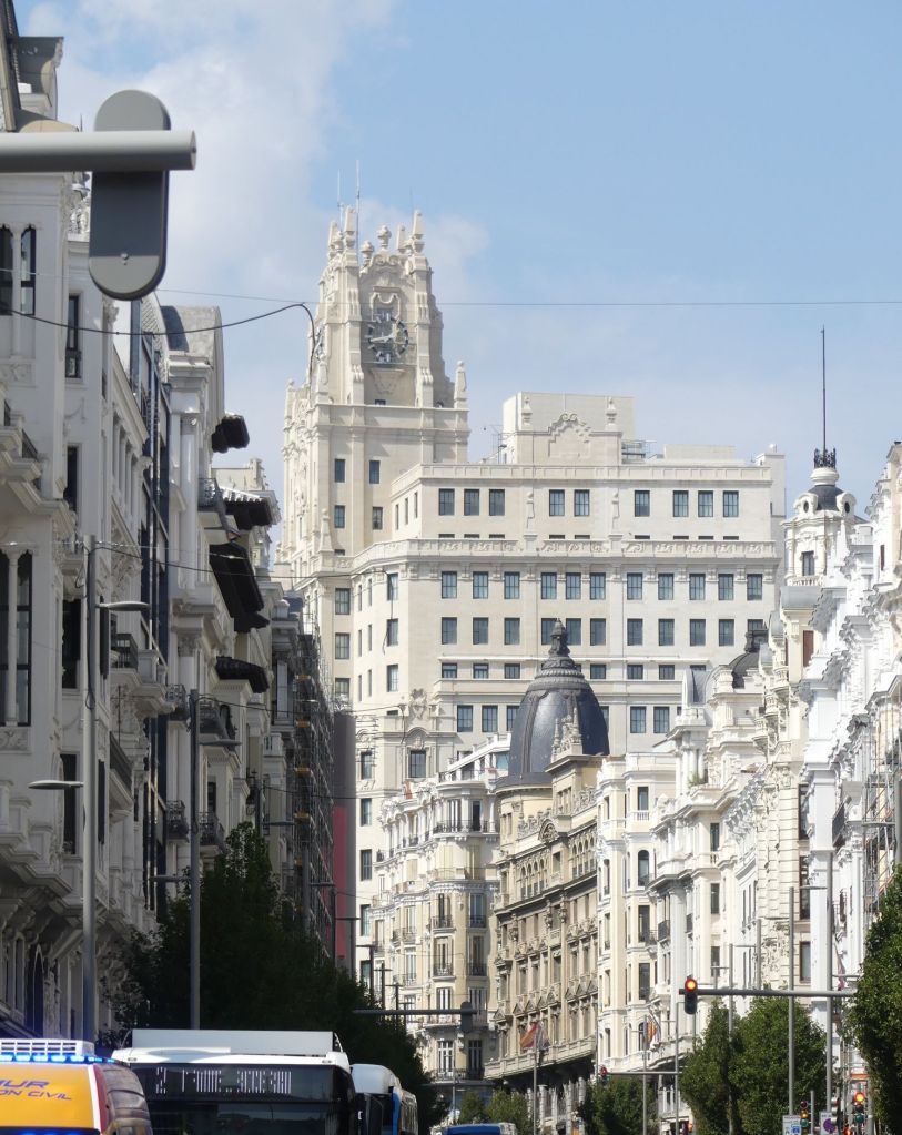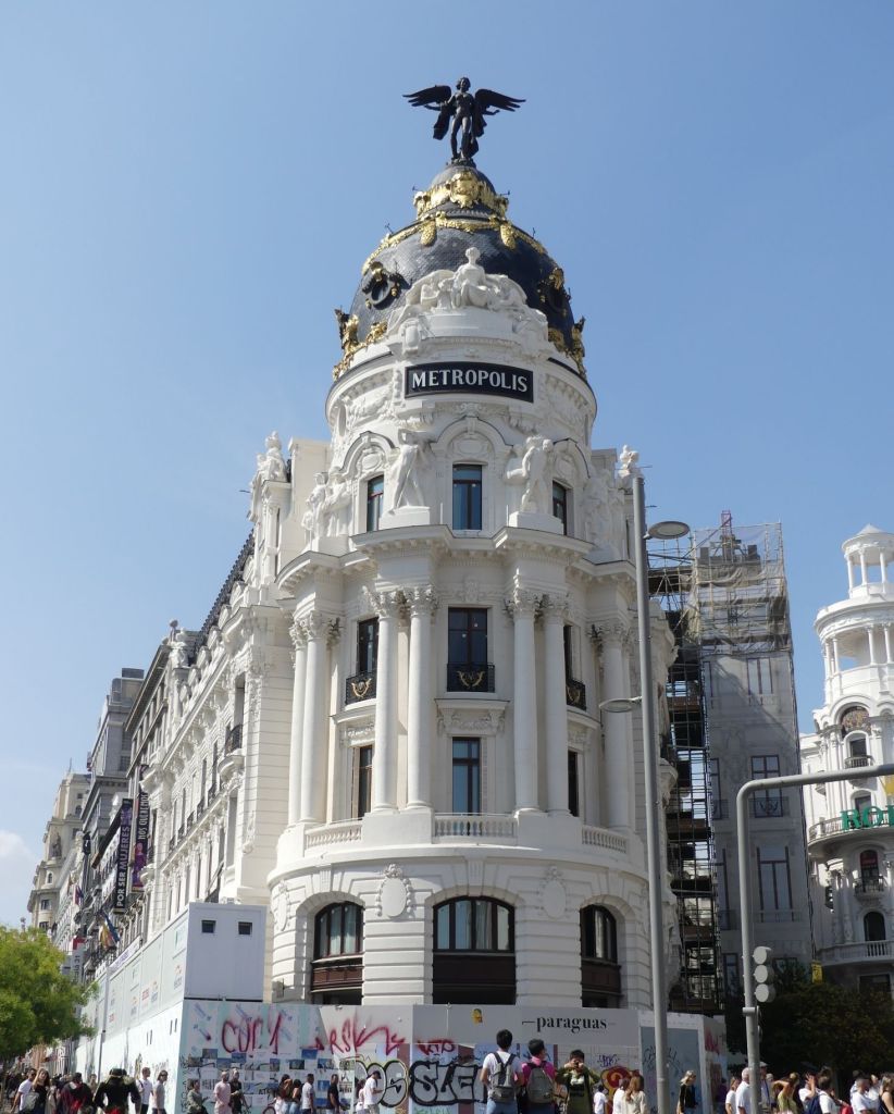 Die bereits etwas ortskundigere Schwester von Jannick nutzte gleich ihren freien Tag am Freitag, um uns auf eine große Stadtrunde ins Zentrum von Madrid mitzunehmen, angefangen mit der Gran Via über das Edificio Telefónica bis zum Metropolis-Haus, weiter zum Haus des Geldes (ich hab’s versucht, leider konnte hier nicht mein begrenztes Projektbudget aufstocken – schade 😉) zum Palacio de Cibeles.