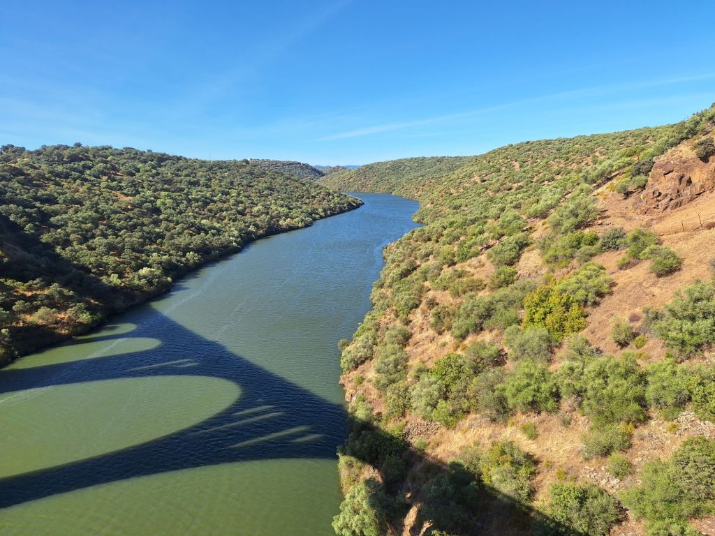 Wie bei der letzten „Via Verde“ vor Madrid wurden wieder einige Tunnel durch den Fels durchfahren, als der Weg sich durch die bergige Landschaft bahnte. Ein Highlight war sicherlich die Überquerung der Brücke des Rio Tajo – der Fluss, der uns bis Lissabon immer wieder begleiten sollte. Ein eindrucksvoller Ausblick inmitten der felsig-grünen Landschaft.