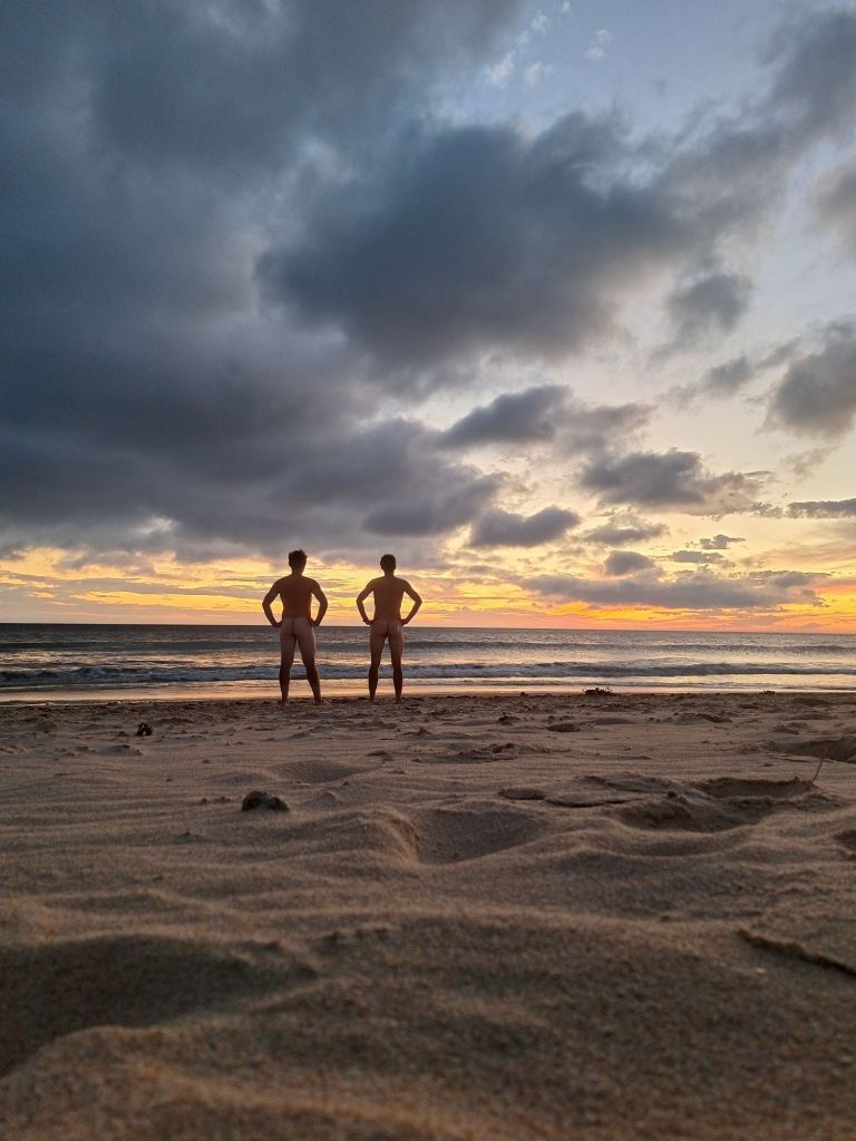 Da eine kurze Erfrischung aufgrund unseres verschwitzten Zustandes dringend nötig war, stürzten Jannick und ich uns im letzten Tageslicht noch einmal in die Fluten der Straße von Gibraltar. Es war fast dunkel und außerdem kannte uns hier eh niemand, weshalb wir uns einfach ohne Badehose die Klamotten vom Leibe rissen 😉
