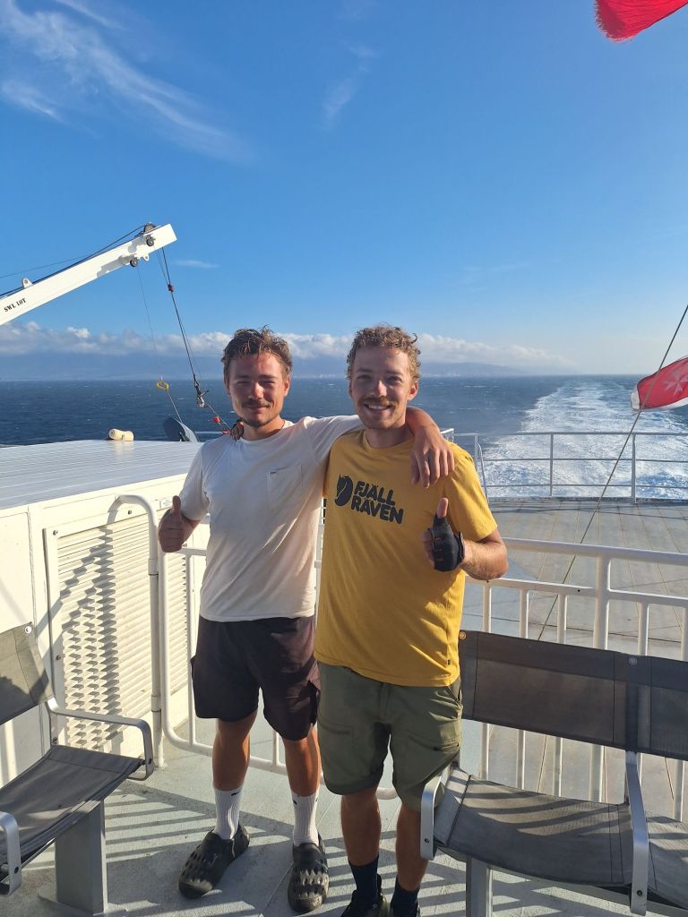 Aufgrund des stürmischen Windes und der aufgewühlten See wurde empfohlen, im Innenbereich sitzenzubleiben und nicht an Deck zu gehen. Wir ließen uns hiervon natürlich nicht belehren – dieser Moment muss dokumentiert werden, nachdem die Fähre um kurz nach 10 Uhr ablegte.