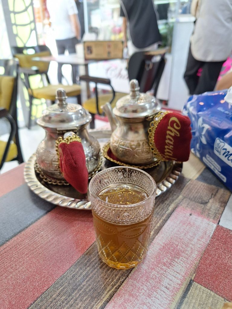 Es glich in vielerlei Hinsicht einem wahren Kulturschock: Die engen Gassen, das rege Markttreiben in der Medina, das arabisch geprägte Flair. Und auch die günstigen Preise. Für nicht einmal vier Euro legten wir noch einmal in einem Café ein spätes Frühstück ein mit Kaffee und natürlich auch marokkanischem Tee. Süße Versuchungen wie Gebäck, Torte etc. lauerten auch, wobei ich natürlich bei den Preisen nicht widerstehen konnte.