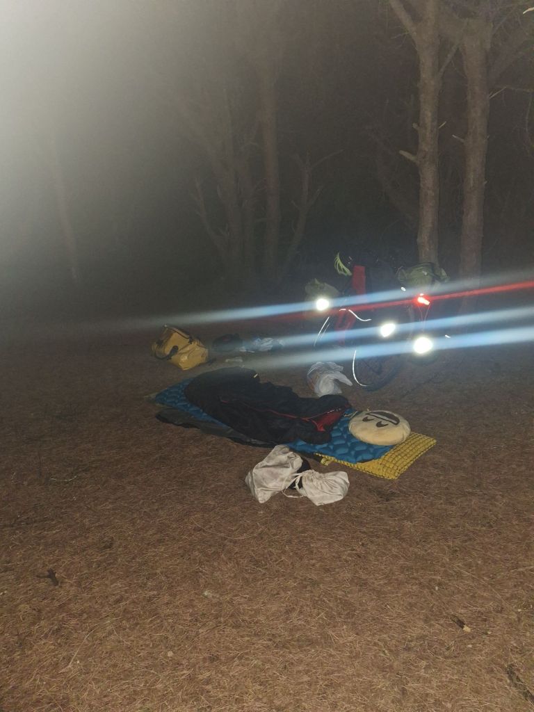 22. Oktober 2024, 19:45 Uhr – nachdem wir uns vom Wind zurück zum Waldgebiet am Strand von Tarifa schieben ließen, tauchten wir in selbigen tief ein, um unser Lager aufzuschlagen.