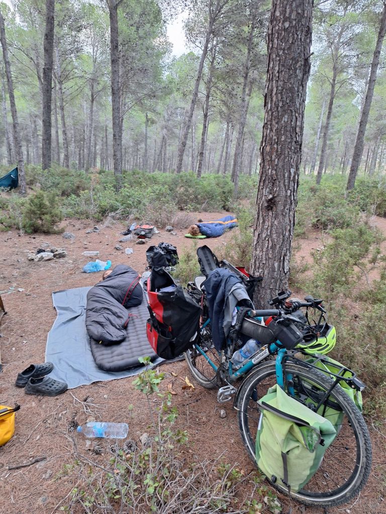 Der Blick beim Ausstieg aus dem Zelt in der Früh war durchaus skurril: Zwei „Penner“, irgendwo im Wald am Schlafen in ihrem Chaos. Ich konnte es mir kaum verkneifen, ein bis zwei Fotos zu machen.