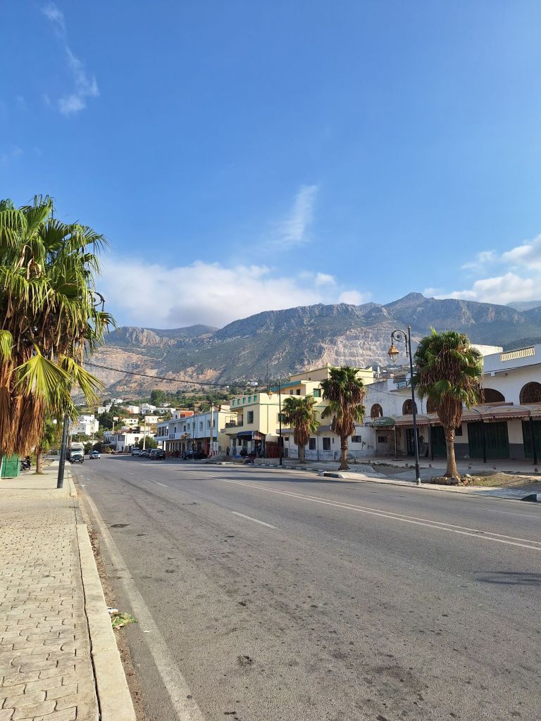 Raus aus der Stadt Tetouan hatten wir in unserem Lager bereits unser erstes richtiges Marokko-Highlight vor Augen: Die Stadt Chefchaouen mit ihren bekannten blauen Gassen wartete auf uns – nicht einmal 50 Kilometer entfernt. Der Blick auf die Höhenmeter bei der Eingabe in Komoot ließ uns jedoch ein wenig die Kinnlade herunterfallen: Knapp 1.000 Höhenmeter mussten überwinden werden – wir spürten immer mehr, warum viele uns vor dem bergigen Marokko warnten.