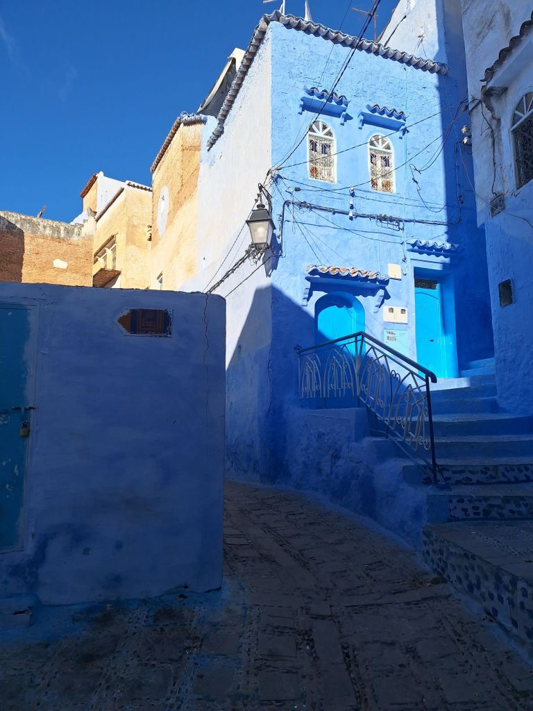Ich schaute auf Google Maps nach – Komoot hatte uns nur an den Rand der Altstadt mit den vielen Gassen geschickt. Wir kannten uns nicht aus und standen vor Treppen, die in die Altstadt führten. Schließlich bot uns ein Einheimischer seine Hilfe an und wies uns den Weg zum Apartment. Wir dachten uns bereits, dass er Geld haben will – und tatsächlich verlangte er nach Erreichen des Hostels 50 Dirham von uns.