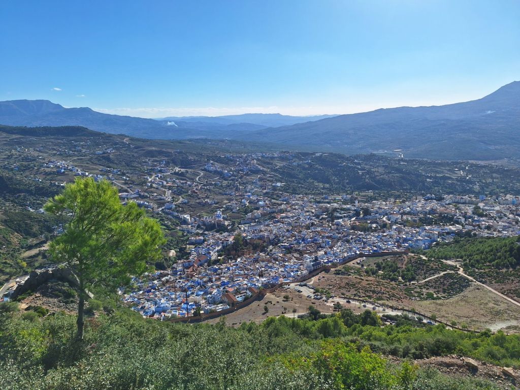 Anschließend wurde natürlich in den Marktgassen weiterhin das Kalorienkonto gefüllt, ehe wir am Nachmittag die Bilanz durch eine kleine Wanderung von etwas über zwei Kilometern und 200 Höhenmetern auf einen Aussichtspunkt über Chefchaouen nur etwas aufbessern konnten (ist ja letztendlich eh egal bei dem fast täglichen Fahrradfahren). Das war nochmal eine ganz andere Perspektive über die Stadt!