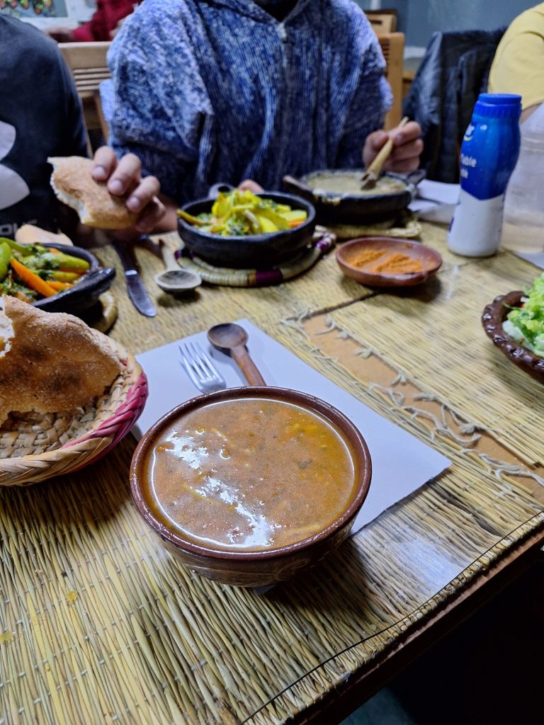 Nach vielen Ausblicken und interessantem Meinungsaustausch machten wir uns wieder auf ins Tal, um nach kurzer Pause im Hostel am Abend nochmal aufzubrechen, traditionell marokkanisch Tajine und Suppe zu essen.