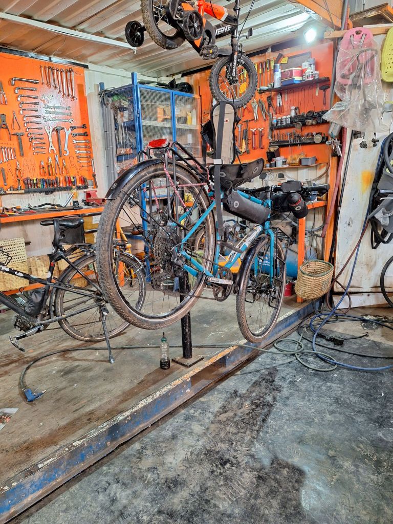 Anschließend kontrollierte er noch Kette und Speichen. Diese waren tadellos – sehr gut! Ein tolles Konzept und ein toller Service von Bikala Bikes, sich so ausführlich um unsere Probleme mit den Bikes zu kümmern – vielen Dank hierfür!