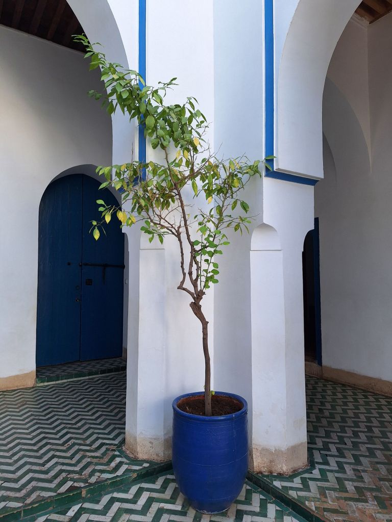 Dann hieß es: Neuer Tag, neuer Garten – dieses Mal sollte der allseits umworbene Jardin Majorelle besichtigt werden. Er ist so begehrt, dass man nicht vor Ort Tickets bekommt. Nur online ist eine Buchung möglich. Ich schaute am Vortrag und hatte Glück, dass noch ein Zeitslot verfügbar war am Nachmittag.