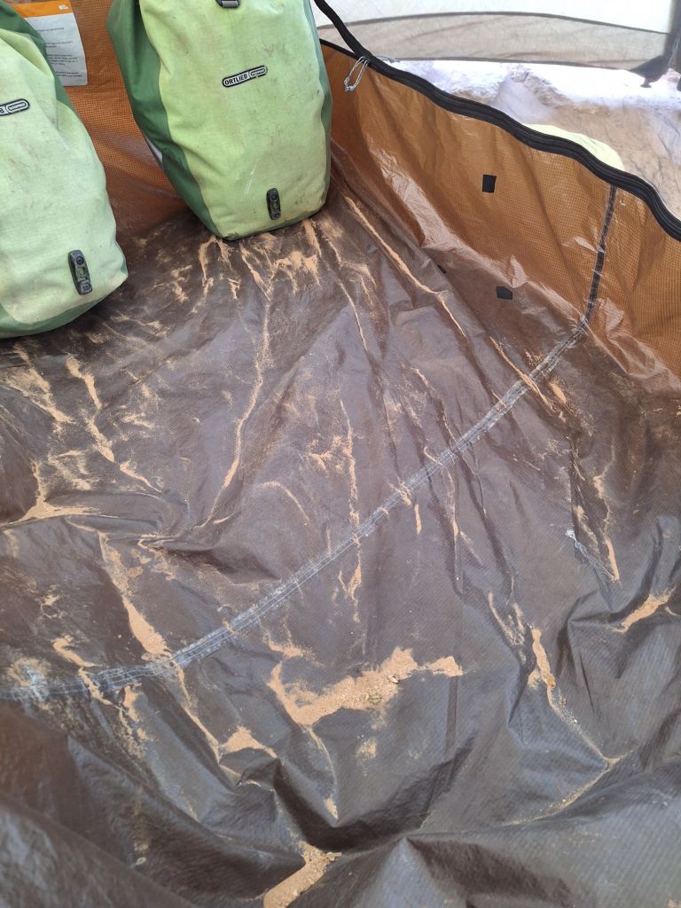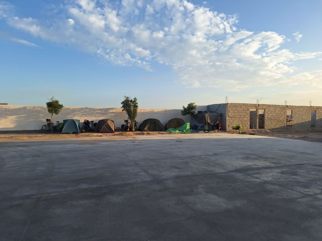Ein Innenhof mit zwei Meter hohen Mauern ringsrum – da denkt man erstmal an Windschutz. Auch wir bauten in der Erwartung einer ruhigen Nacht unsere Zelte auf und legten uns entspannt schlafen. Eine krasse Fehleinschätzung.