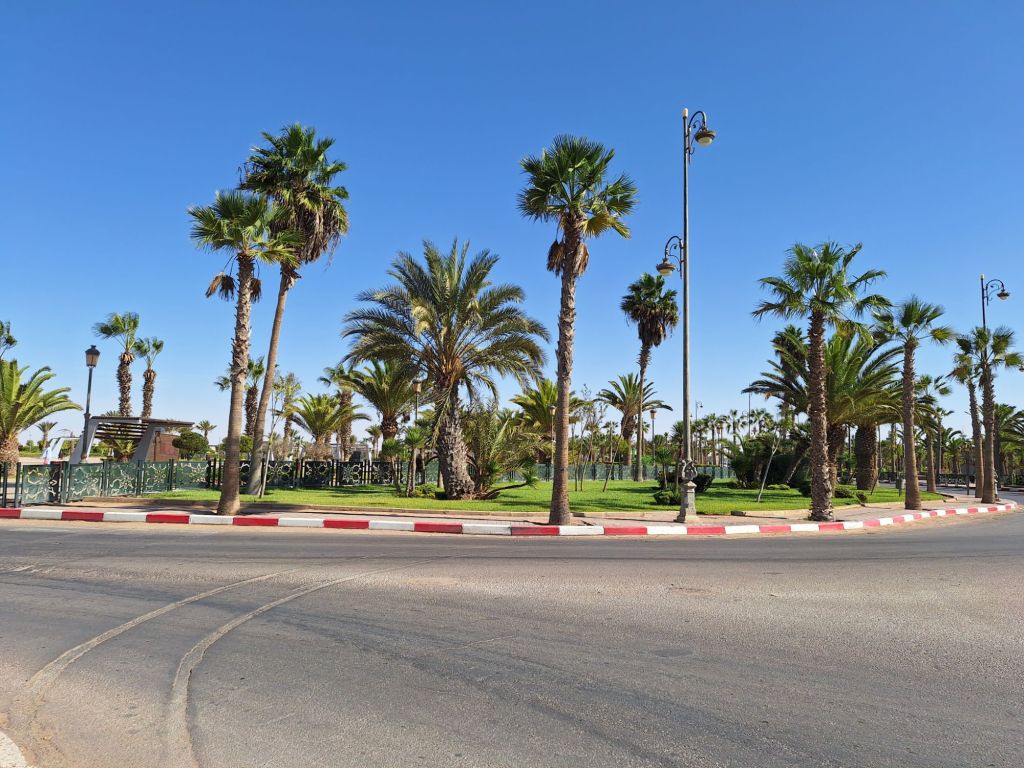 Als dann ein bis zwei Kilometer später im Laayoune begann, konnte ich meinen Augen bei den Eindrücken im Sonnenuntergang kaum trauen: Direkt an einem Fluss gelegen zeigen sich hier viele Palmen und allgemein saftiges Grün – ein kompletter Kontrast zur umliegenden Wüste! Außerdem ist die Stadt auch durchaus hügelig – die ersten Höhenmeter seit langem, man hat es sich ja schon mehr oder weniger abgewöhnt!