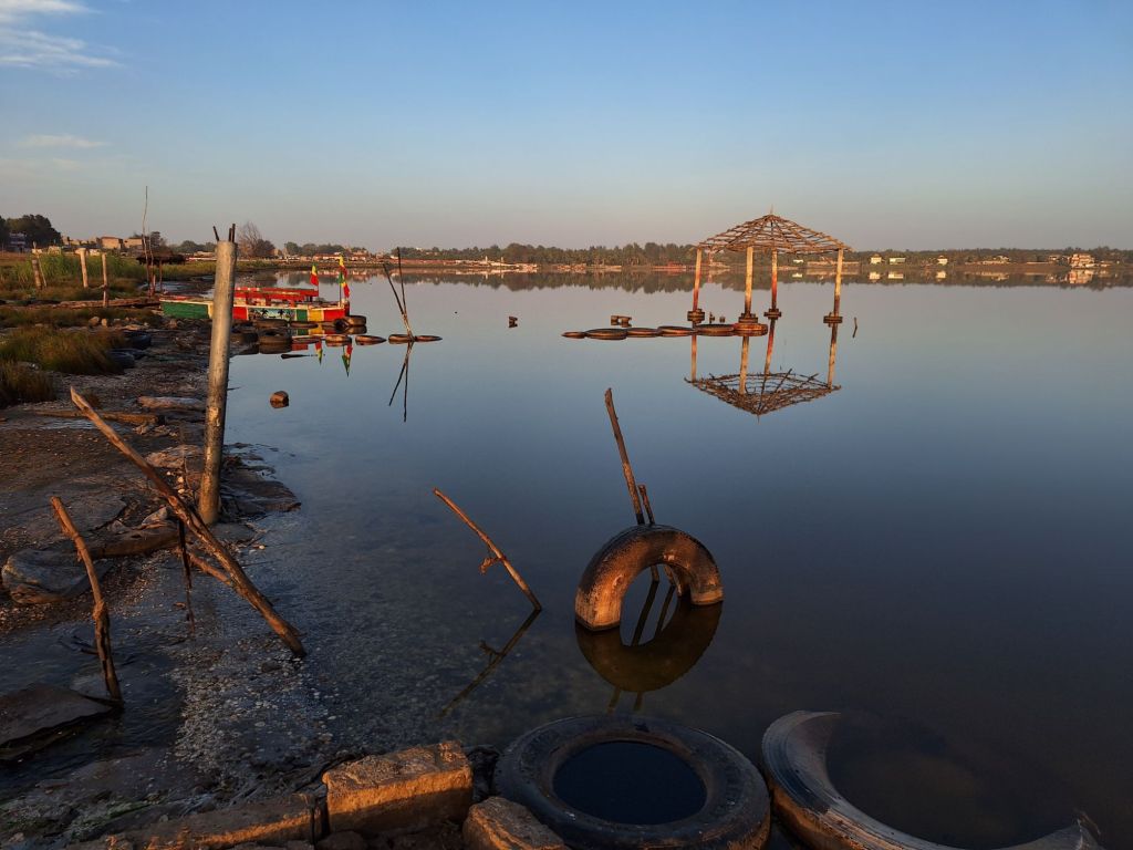 So begnügten wir uns mit einem entspannten Abend in unseren Zelten in erster Reihe am See. Immerhin die Morgenstimmung am windstill daliegenden See am nächsten Morgen hatte dann durchaus etwas sehenswertes.
