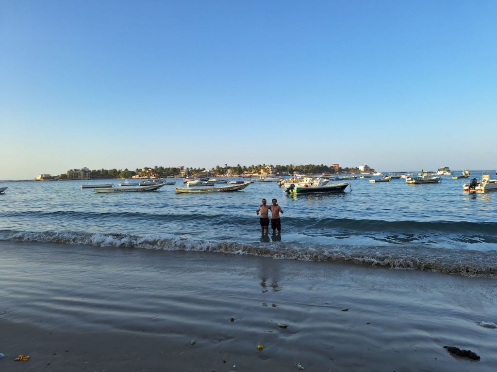 Nach ein paar Bier und netten Gesprächen im Hostel gingen wir zum Strand, um ins Jahr 2025 zu rutschen. Bzw. ich schwamm zünftig ins neue Jahr mit einer kleinen Badeeinlage zu Neujahr, nachdem das Feuerwerk im Vergleich zu heimischen Verhältnissen doch eher dürftig ausfiel. Wir stießen an auf ein erfolgreiches 2025 und mussten uns fast ein wenig kneifen bei dem Gedanken, dass wir vor einigen Monaten gemeinsam in den gemäßigten Breiten Mitteleuropas gestartet sind und uns nun in der senegalesischen Hauptstadt befinden.
