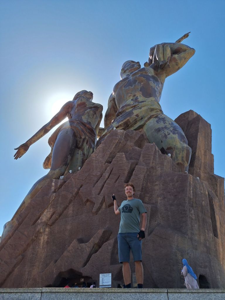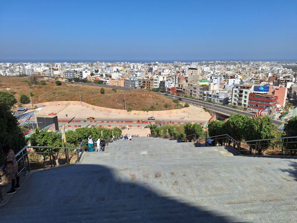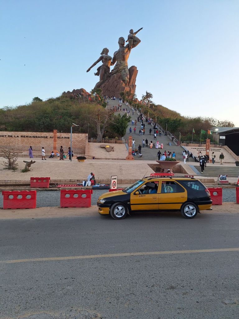 So stürzten wir uns alsbald in die Hektik der senegalesischen Hauptstadt und machten perfekt auf halber Strecke einen Stop beim Monument de Renaissance, mit 52 Metern das größte Dankmal Afrikas auf einem ca. 100 Meter hohen Hügel nordwestlich vom Zentrum. Schon bei Anfahrt merkt man, dass es etwas bergauf geht😉