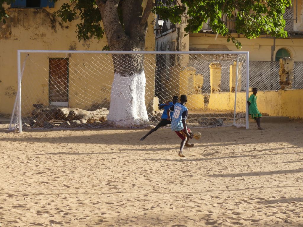 Unser Spaziergang, begleitet von so manchen freilaufenden Ziegen – eben normal in Afrika – führte uns anschließend noch durch das Wohnviertel der Insel, wo die Kinder fröhlich dem runden Leder hinterherlaufen – auch einfach typisch hier.