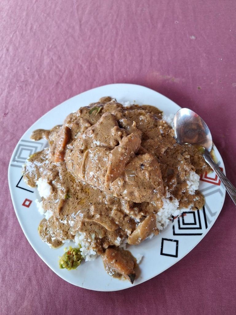 Versüßt wurde die steigende Stimmungslage durch das Restaurant nebenan, wo man für für 3 Euro eine Portion Reis mit Fisch und Gemüse sowie Süßkartoffeln in Erdnusssauce serviert bekam, der sich wirklich gewachsen hatte.