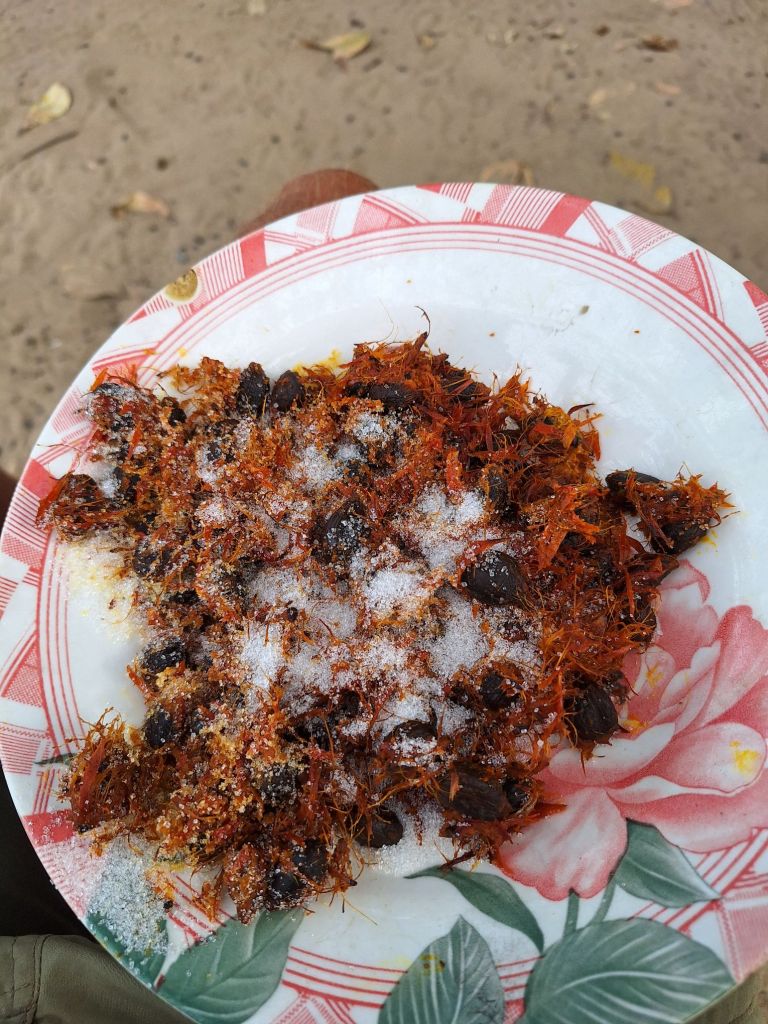 An der letzten Siedlung 500 Meter vor dem Strand machte ich also Halt und wurde sofort mit einer innigen Umarmung empfangen. Die empfangende Person führte mich zum Dorfchef, der uns selbstverständlich die Erlaubnis gab, an dem Strand zu übernachten. Obendrein wurde mir noch etwas Undefinierbares mit viel Zucker zum Essen angeboten, wovon ich kostete, jedoch relativ schnell entschuldigend abwinken musste.