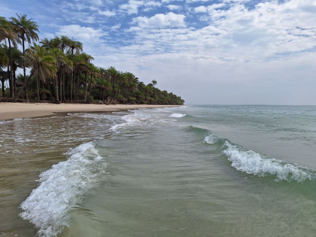 Ursprünglich wollten wir an diesem Tag zurück ins Dorf, um am Sonntag dann komfortabel das Boot zurück zu nehmen. Weil uns der „Social-Detox-Tag“ an diesem Strand jedoch so gut gefallen hat, entschieden wir, nach dem Einkauf von neuem Proviant und einer Nacht in unserer Lodge im Ort nochmal an den Strand zurückzukehren für zwei Nächte und das Boot am Mittwoch zu nehmen. Auch, weil wir den Strand nun bei überwiegend bewölktem Wetter erlebt haben, und ihn eben auch noch einmal bei sattblauem Himmel sehen wollten.