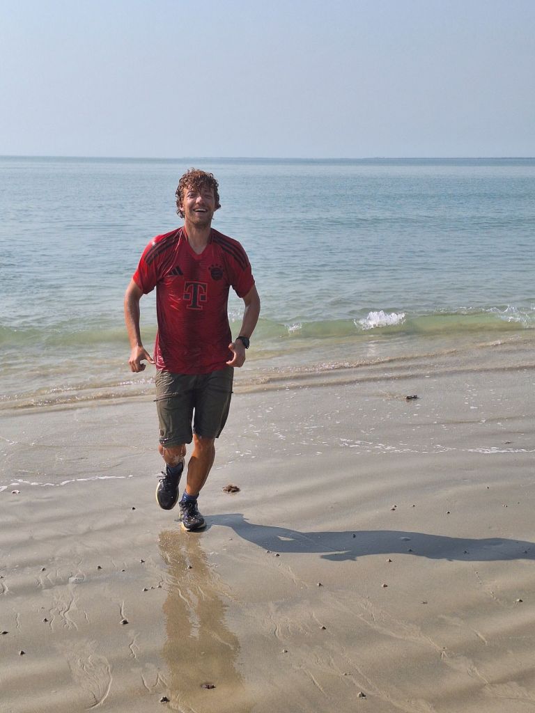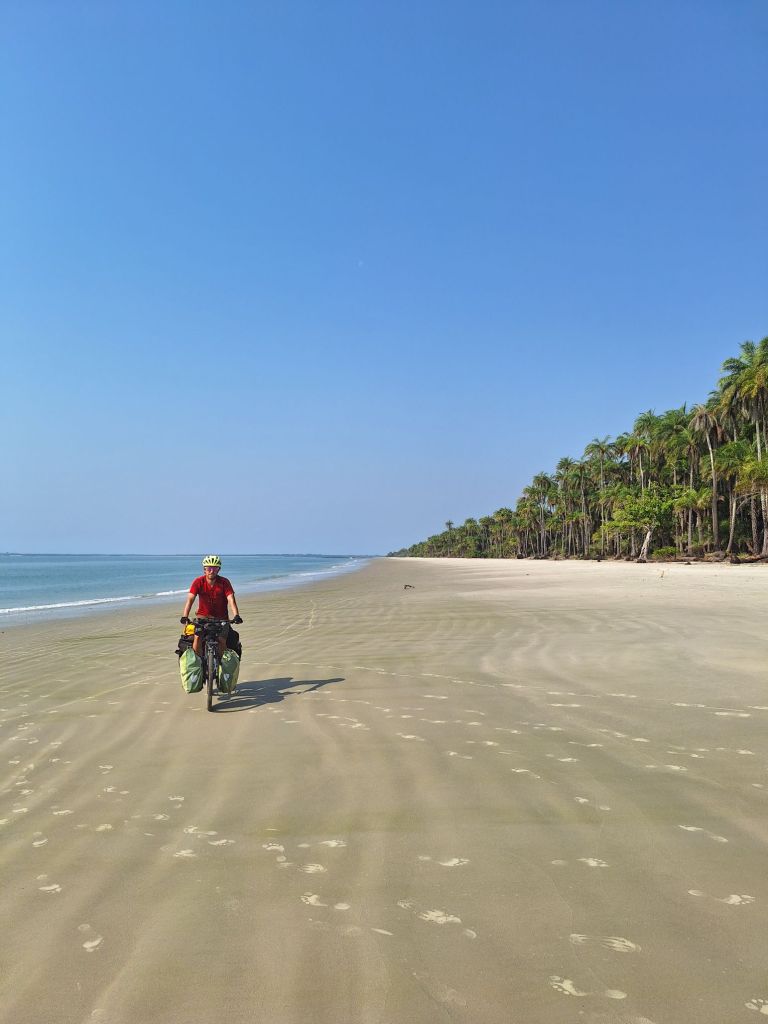 Am Dienstagvormittag schließlich machten wir uns bei schwülheiß-tropischem Wetter schließlich wieder auf den Rückweg. Was ist die beste Lösung, um 15 Kilometer Fahrradfahren ohne große Hitzebeschwerden zu überstehen? Richtig, einfach vorher einmal mit allen Klamotten eintauchen, ehe wir schließlich über den enorm gut fahrbaren Strand nun in Hafennähe zurückkehrten und diesem Paradies „Goodbye“ sagen mussten.