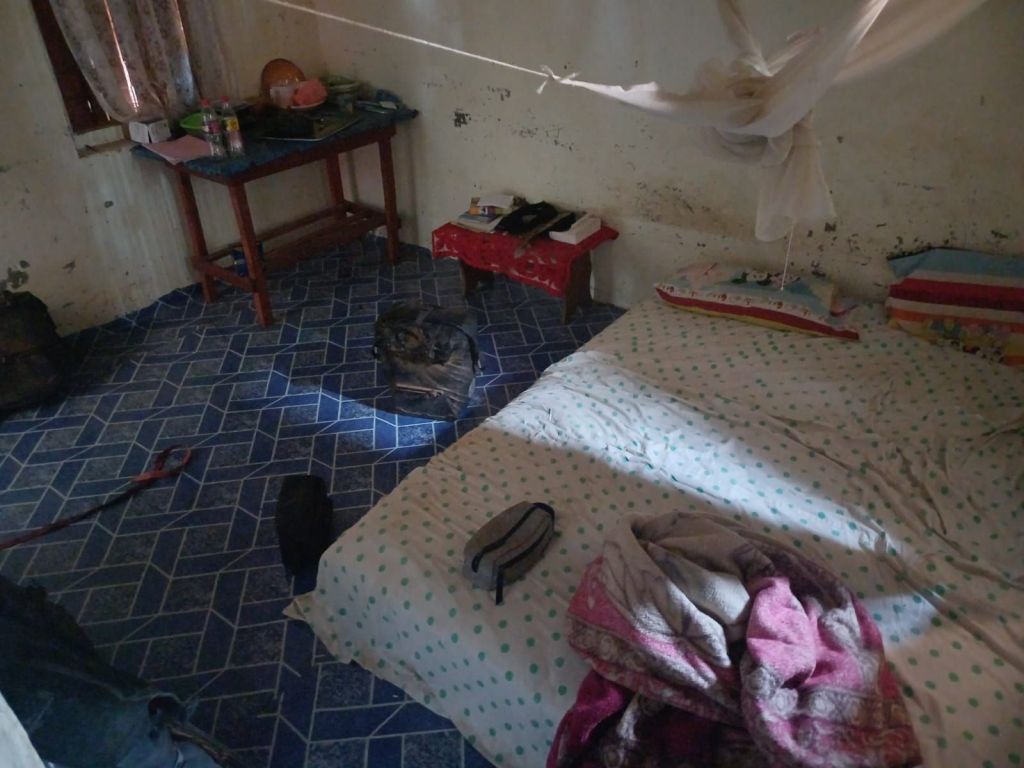 Wir folgten dem Polizisten zu seiner Wohnung und konnten hier auch unsere Räder reinstellen. Dennoch war es auch erschreckend zu sehen, in wie spartanischen Verhältnissen die Dienstmitarbeiter hier untergebracht werden. Es gab weder Strom noch fließend Wasser. Der klassische Eimer musste ausreichen. Hinter dem Eingangsbereich gab es ein Schlafzimmer, wo eine Zwei-Mann-Matratze drin lag und noch ein Schreibtisch im Eck stand – das war’s.