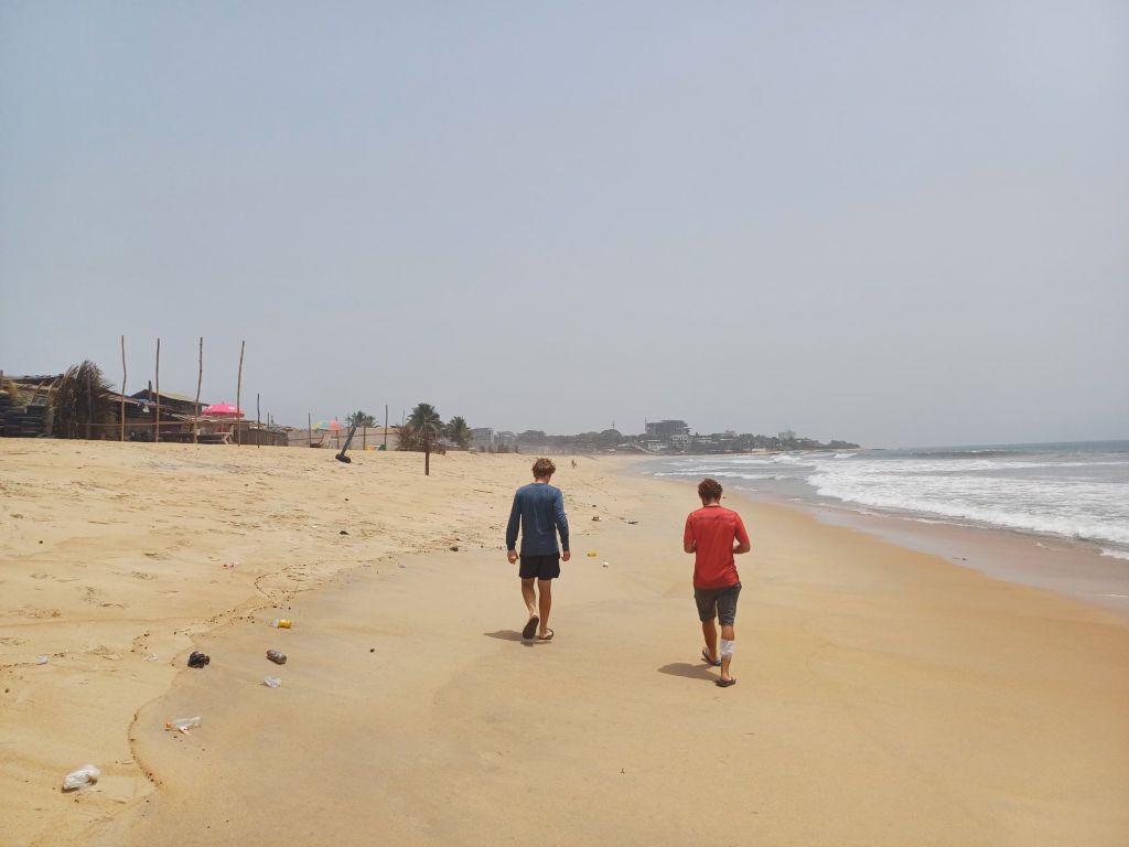Es ging zum direkt nebenan gelegenen Strand von Monrovia, wo die Wellen nur so das Wasser an Land peitschten – Schwimmen ist hier eher schwierig.