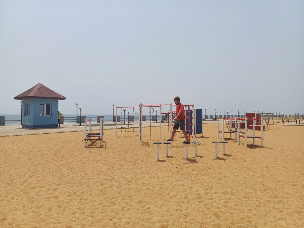 Hier gab’s sogar moderne Spielplatzanlagen und einen Fußballplatz direkt am Strand – das hatte doch direkt etwas europäisches Flair. Auch gutes Essen gab’s, weshalb wir trotz der auch natürlich etwas teureren Preise hier eine Pause einlegten. Aber was heißt teuer? Umgerechnet 2,50 Euro für einen großen Salat mit Fisch und Hähnchen…