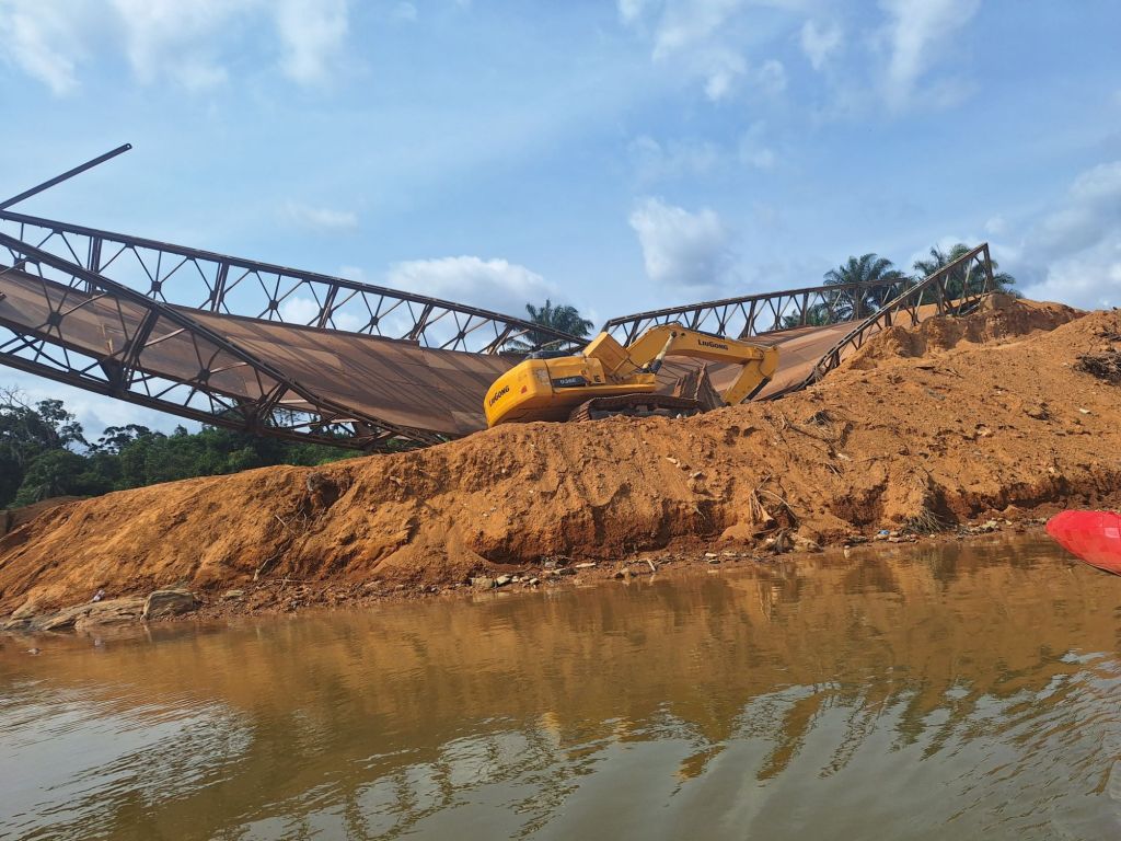 Die Pause konnte ich zudem nutzen, im Fluss nebenan meine Schuhe wieder grob zu reinigen. Hier konnte ich bereits unser nächstes Problem bestaunen: Eine eingestürzte Brücke über den Fluss, hier ist kein Durchkommen.