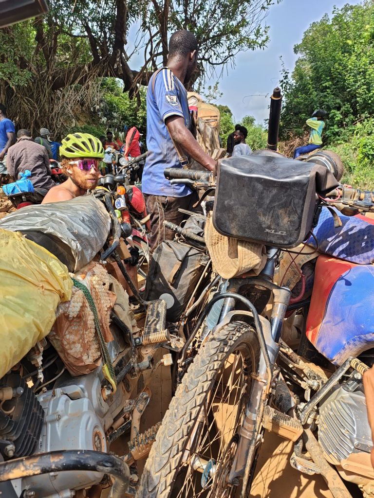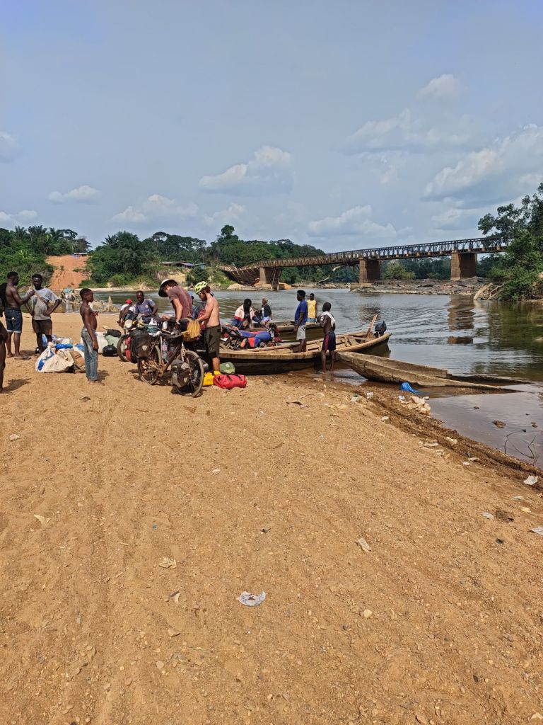 Abhilfe schuf eine Pirogue über den Fluss, wo man mühselig alle Taschen abnehmen musste und die Räder neben zahlreichen Motorrollen irgendwie auf das Boot quetschen musste. Die vielleicht fünfminütige Fahrt über den Fluss war zudem mit umgerechnet fünf Euro wahrhaft überteuert.