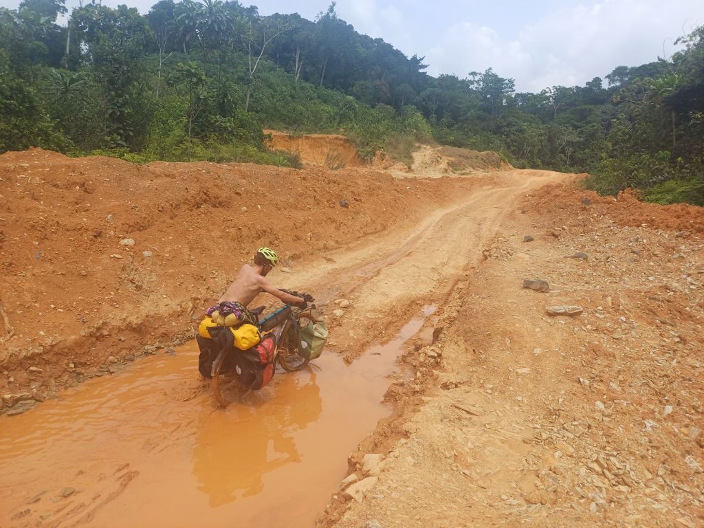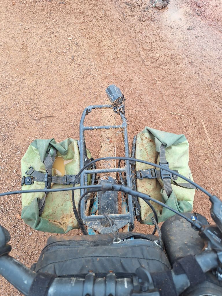 Bereits abends wollten wir dann wenigstens noch ein paar Kilometer rausfahren. Schnell merkten wir jedoch, dass es auf der vom Starkregen aufgeweichten, sandigen Piste wenig Sinn macht. Lediglich das Fahrrad musste unter dem eindrigenden Sand leiden.