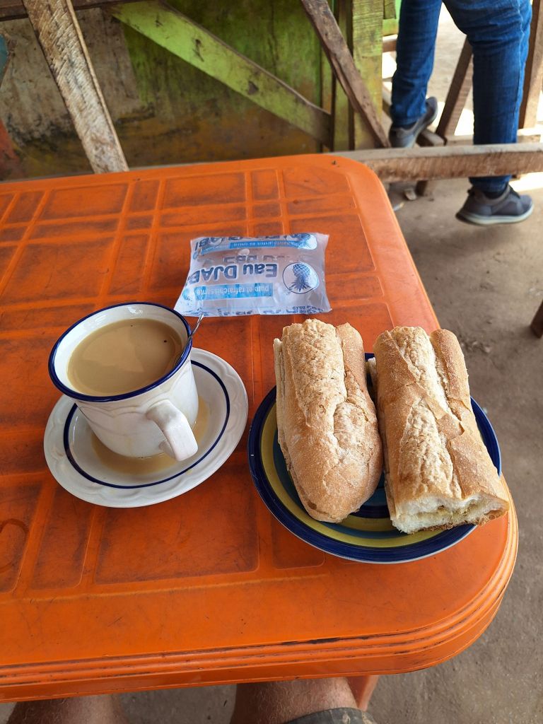 In der Früh ließen wir es, auch aufgrund des gemütlichen Ambientes mit dem Restaurant und vielen Tischen und Stühlen entspannt angehen und genossen lange Zeit unseren Kaffee inklusive Austausch mit zwei angetroffenen Personen aus Burkina Faso sowie der Besitzerin des Restaurants, die fleißig die Öffnung vorbereitete (leider erst um 12 Uhr, da waren wir schon auf der Strecke).