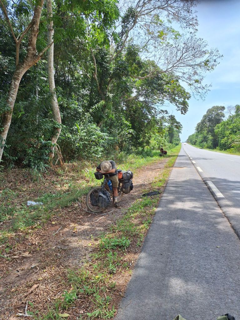 So quälten wir uns unter der Tropensonne eher dahin mit vielen Pausen, immer das große Ziel Abidjan vor Augen rangen wir dem zum Ende hin etwas hügeliger werdenden Gelände noch den ein oder anderen Kilometer ab. Auch, weil sich Jannicks Magen-Darm-Situation besserte. Insgesamt war er jedoch aufgrund der Dehydrierung mit fortschreitender Tageszeit am Ende seiner Kräfte.