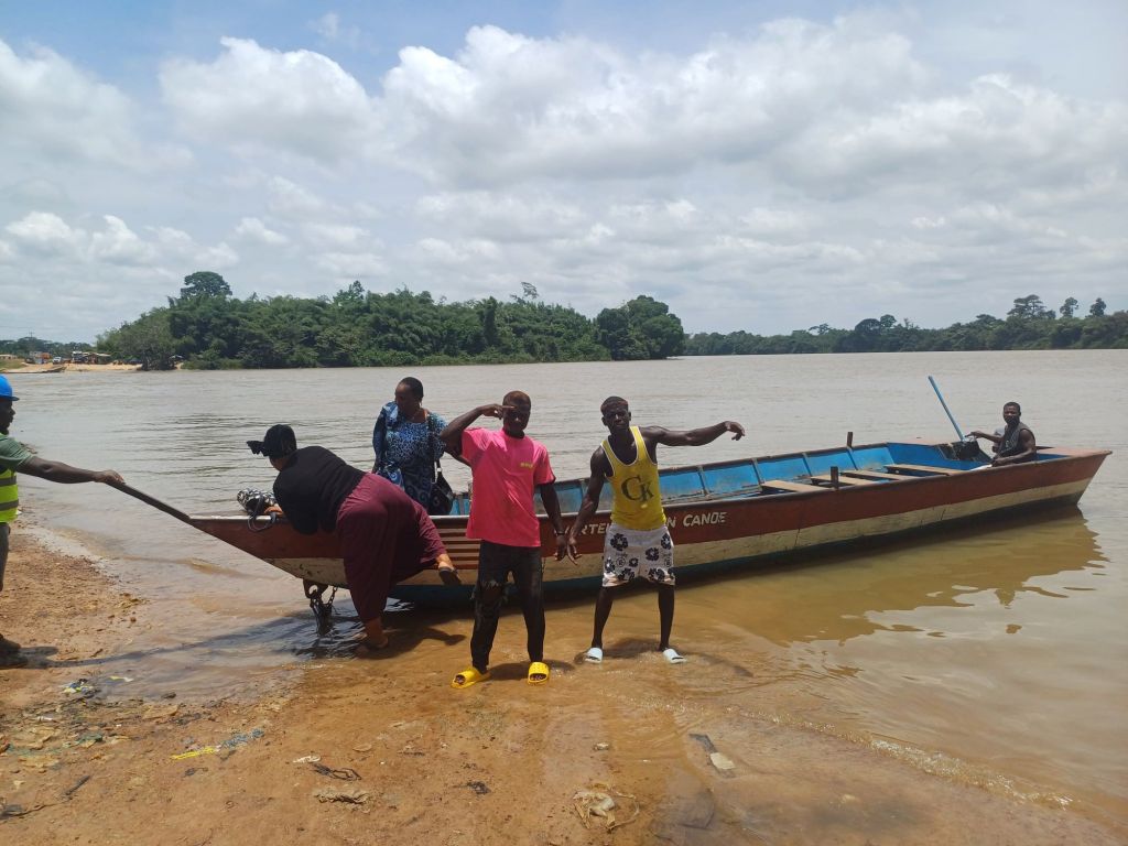 Nun hieß nach einem kurzen Wiederauffüllen der Flaschen: Verhandeln für den Preis für die Überfahrt in die Elfenbeinküste mit der Pirogue. Erst gab man uns den Preis bereits wieder in CFA, also der Währung, die wieder in der Elfenbeinküste vorherrscht (wie bereits in Senegal und Guinea-Bissau). Hierbei wollte uns man zunächst dreist mit 10.000 CFA (15 Euro) übers Ohr hauen.