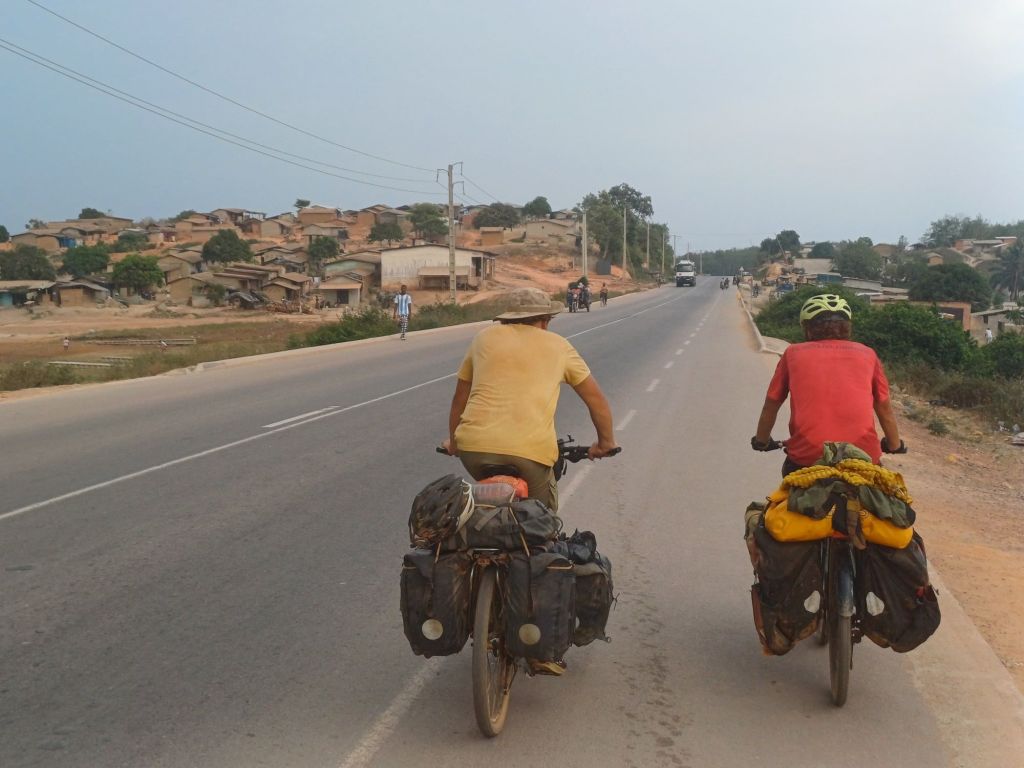 Nach der Losfahrt bot sich im Ort Zegbé selber aber eine gute Restaurantmöglichkeit, die wir jedoch ausschlugen und stattdessen Kilometer sammelten. Jannick war wieder besser in Form als am Vortag. Das war auch notwendig, denn insgesamt wurde das Terrain deutlich hügeliger. Da Jannick und ich vorankommen wollten und Lucas es etwas ruhiger angehen wollte, bildeten sich zwei Gruppen bzw. Lucas fuhr für sich. So ging es durch zahlreiche Ortschaften mit Markt und Einkaufsmöglichkeiten für kleine Pausen dahin. Zudem musste eine längere Pause eingelegt werden, weil Jannicks Magen-Darm-Gesundheit dann doch noch nicht wieder hundertprozentig hergestellt war.