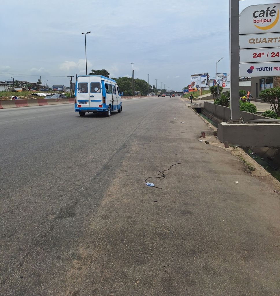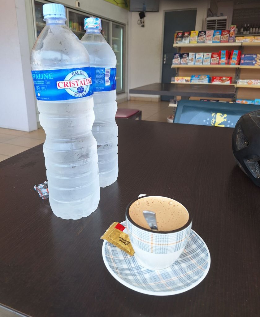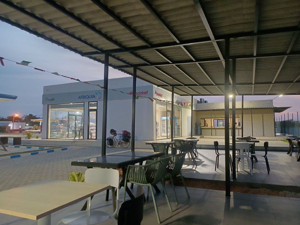 Dickköpfig setzten wir unseren Weg fort, der durch weitere lange Anstiege nicht unbedingt erleichtert wurde. Obendrauf kam, dass mir mein Wasser ausging. Passenderweise kam zehn Kilometer vor dem Ziel (ja, wir waren bereits mitten in Abidjan, aber die Stadt hat einfach eine enorme Ost-West-Ausdehnung) eine Tankstelle mit Café. Sehr gut! Ich hatte eine Pause dringend notwendig, meine Form war das komplette Gegenteil vom vorherigen Tag, da mein Körper einfach nur noch Ruhe wollte.