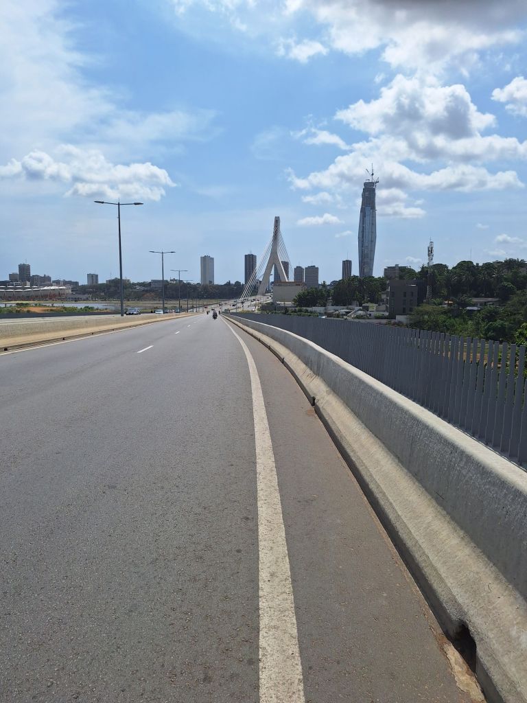 So weit, so gut. Es hieß, dass wir die Fahrräder am Montag wieder abholen können. So verblieben wir und nutzten gleich die Zeit, wenn wir schonmal gemeinsam im Zentrum waren: Wir nahmen uns das nächste Taxi, um zum Plateau-Viertel zu fahren. Es ist quasi das moderne Viertel von Abidjan. Schon bei der Anfahrt beeindruckte die Brücke, über welche die Straße in das Viertel führt.