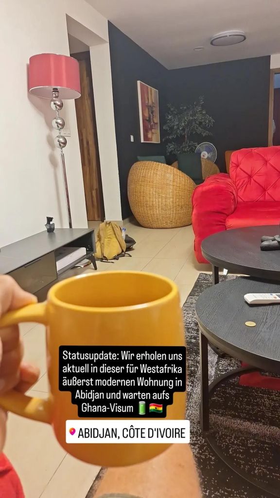 In der Botschaft dann jedoch eine kleine Hiobsbotschaft: In dieser Woche ist bereits ein regulärer Feiertag in der Elfenbeinküste, während Anfang der nächsten Woche noch zwei Feiertage aufgrund des Endes vom Ramadan folgen – puuh, einen hatten wir auf dem Schirm, weshalb wir das ursprünglich bis Montag gebuchte Airbnb bis Dienstag verlängerten. Aber drei?!