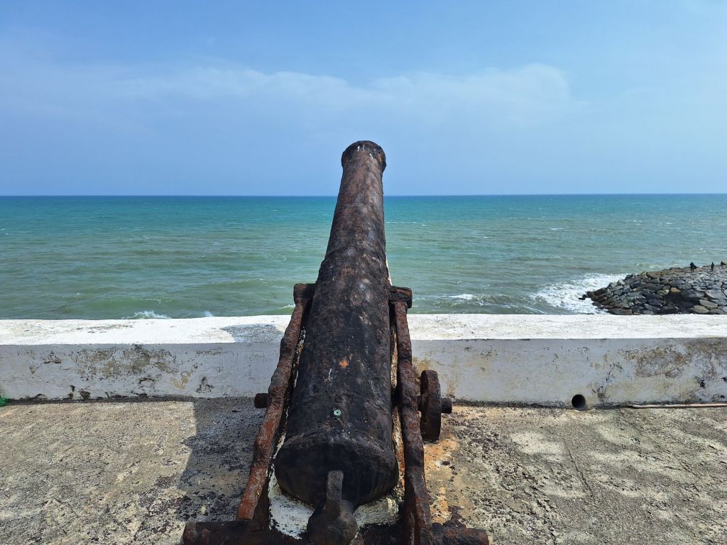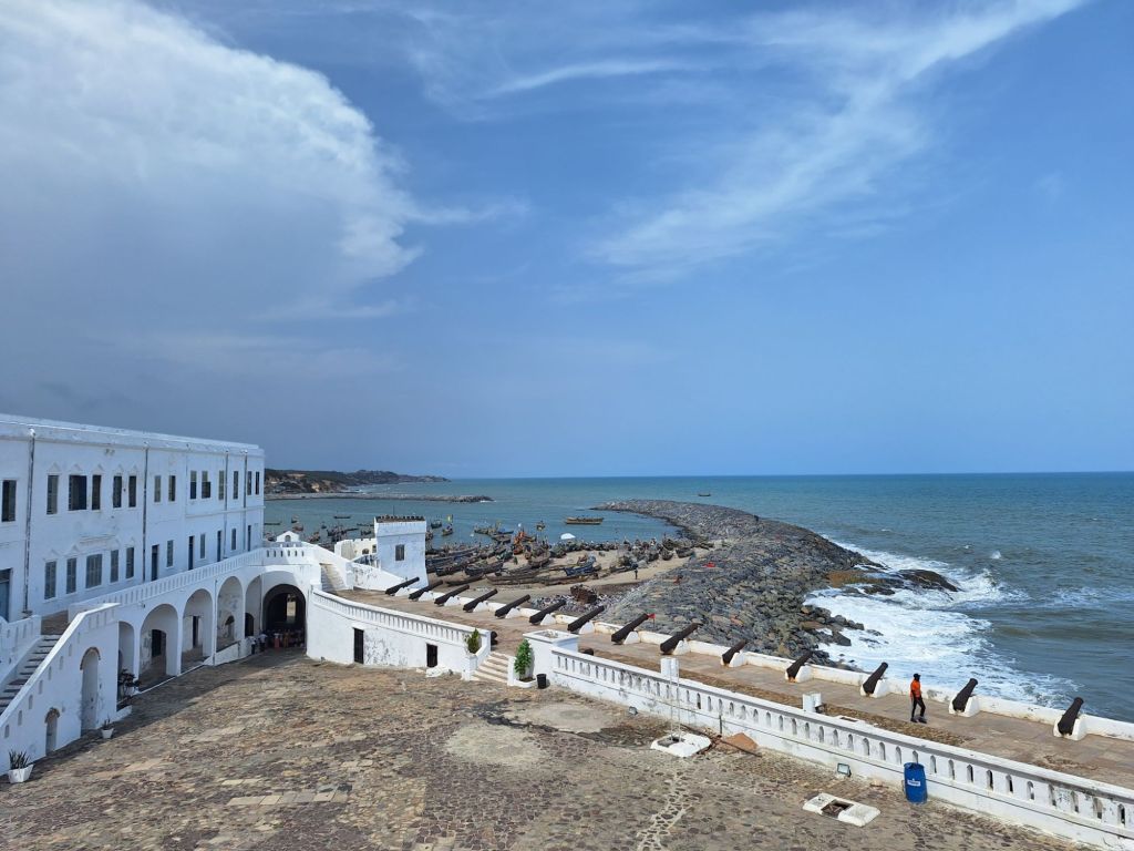 Weiter ging es zu den aufs Meer ausgerichteten Kanonen, um Kolonialisten aus Frankreich, den Niederlanden und auch Portugal fernzuhalten von diesem begehrten Standort an der Goldküste Ghanas. Aus strategischen Gründen wurde in Form einer zweiten Burg auf einem nur unweiten Hügel daher noch ein Militärstützpunkt geschaffen. Hierdurch sollten Angreifer frühzeitig entdeckt werden.