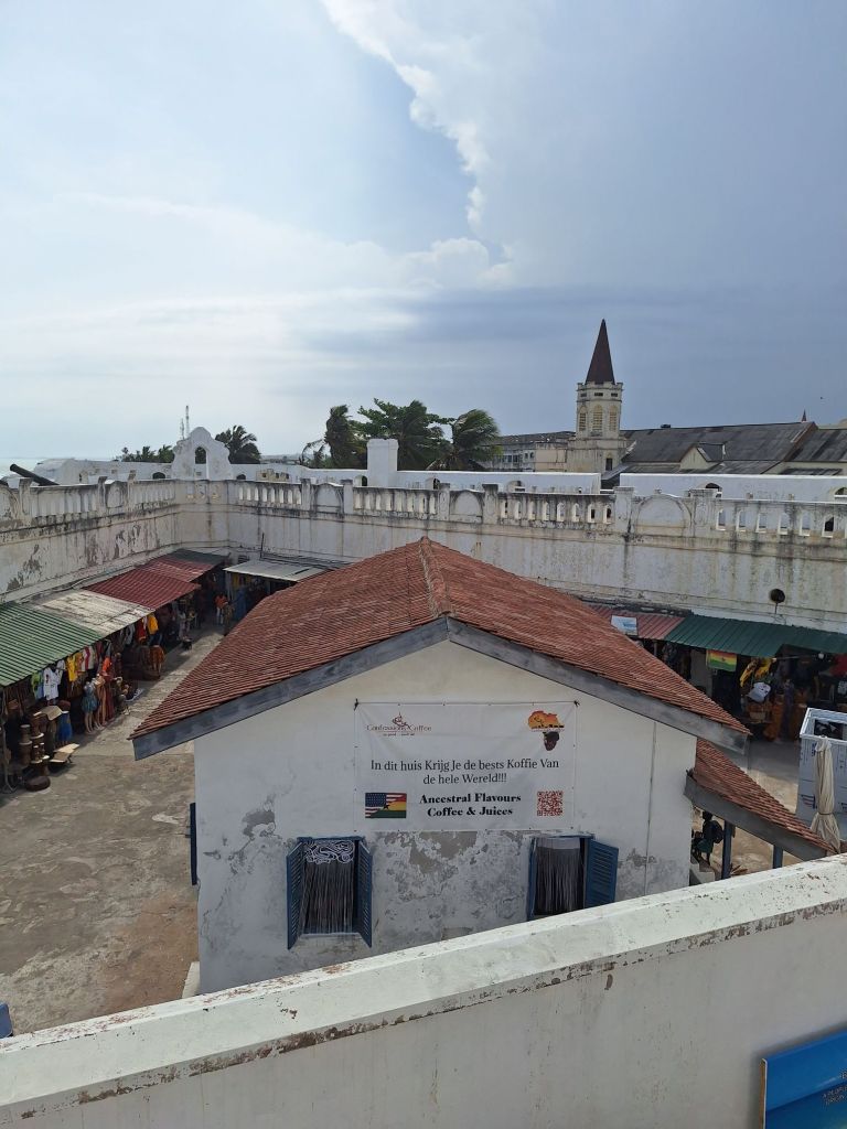Zum Schluss führte uns der Guide zum Kantine der Soldaten auf der Burg – heute handelt es sich hierbei um ein normales Café für Touristen auf dem Gelände – laut Guide mit dem „besten Kaffee in ganz Ghana“. Laut Aufschrift sogar von der ganzen Welt…