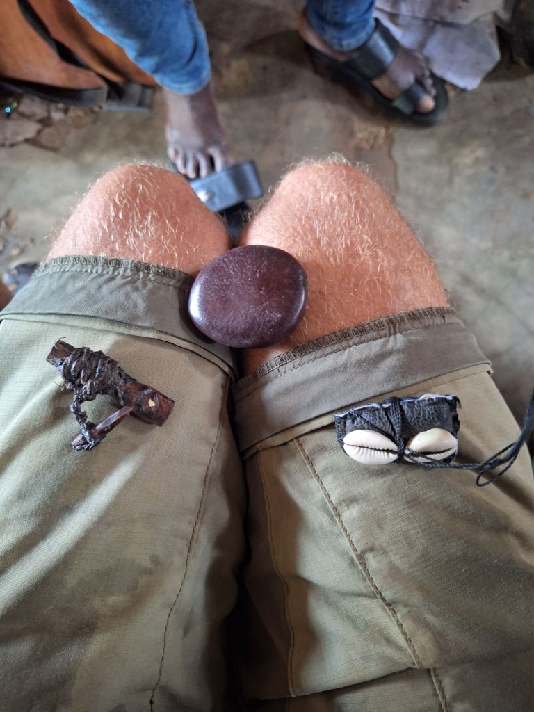 Dennoch war es auch sehr amüsant, als mein Vater anscheinend gesegnet wurde und wir noch verschiedene Fetische erwerben konnten, die einen in allerlei Situationen einen Schutz geben sollen. Jannick und ich holten uns einen Telefonfetisch aus Holz. Hiermit soll man vor Unfällen jeglicher Art geschützt sein – das nimmt man dann doch gerne 😉 Man muss halt nur fest genug dran glauben…