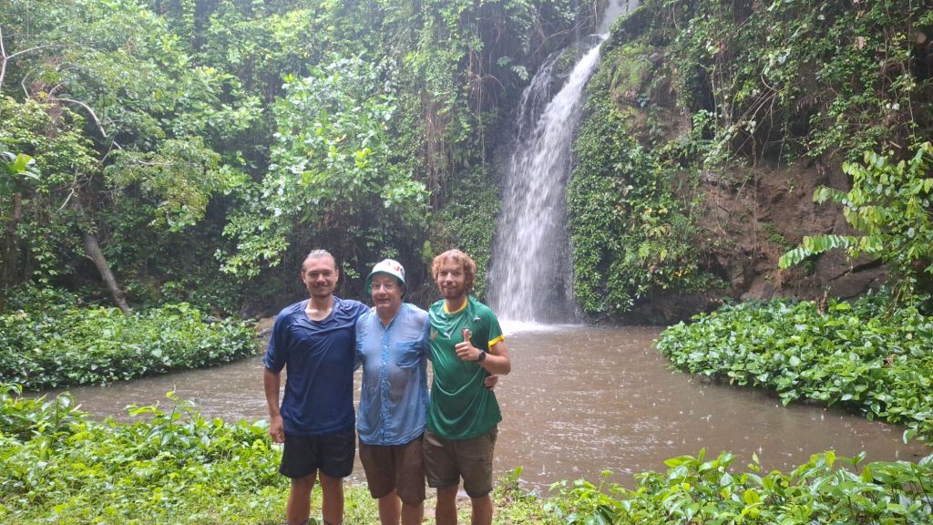Anschließend ging es in einem wahren Regentanz über einen steilen, schmalen Regenwaldpfad zu dem ersehnten Wasserfall, der bei den regnerischen Bedingungen noch einmal ein eigenes, geheimnisvolles Flair hatte.