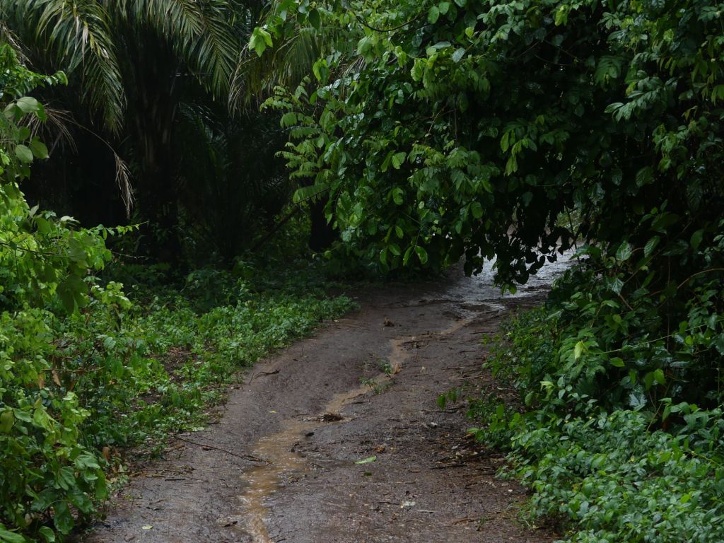 Hier gab es jedoch ein kleines Missverständnis: Unser Fahrer dachte, wir wollen zur Cascade de Kpimé, die direkt hinter Kpalimé am Fuße der Berge des Togo-Atakora-Gebirges liegt. Der angepeilte Wasserfall befand sich jedoch tief in diesem Gebirge, man hätte bis zum Ausgangspunkt der Wanderung erstmal lange über Schotter fahren müssen. Wir wollten den eh schon gestressten Fahrer auch ob der zunehmend regnerischen Bedingungen nicht weiter stressen und gaben der Cascade de Kpimé eine Chance.