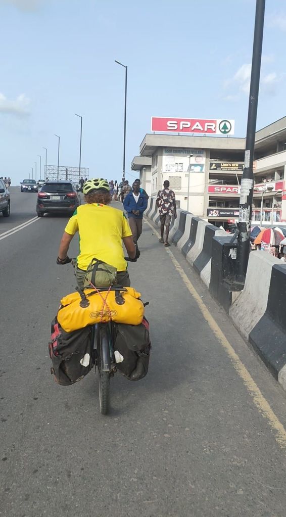 Hierbei kam es dann leider zu einem Missverständnis, weil unser Fahrer uns zu einer gleichnamigen Straße am anderen Ende vom Mainland von Lagos führte. Nach Aufklärung des Missverständnisses fuhr er uns aber ohne Klagen noch zum Fahrradladen.