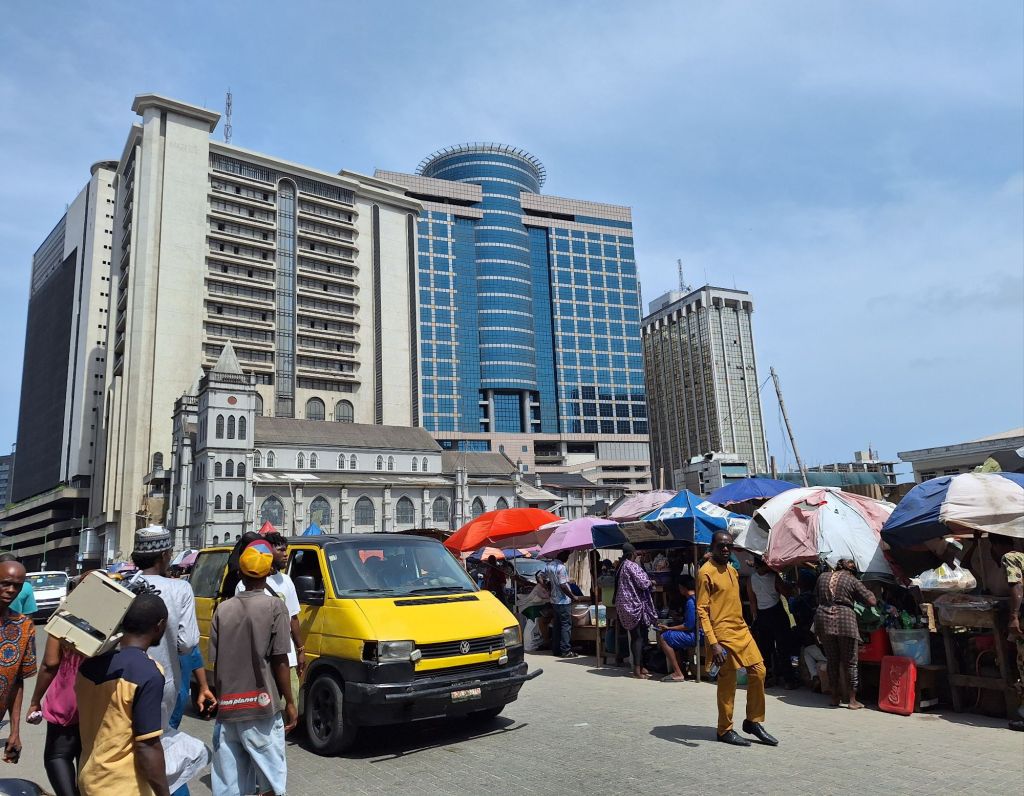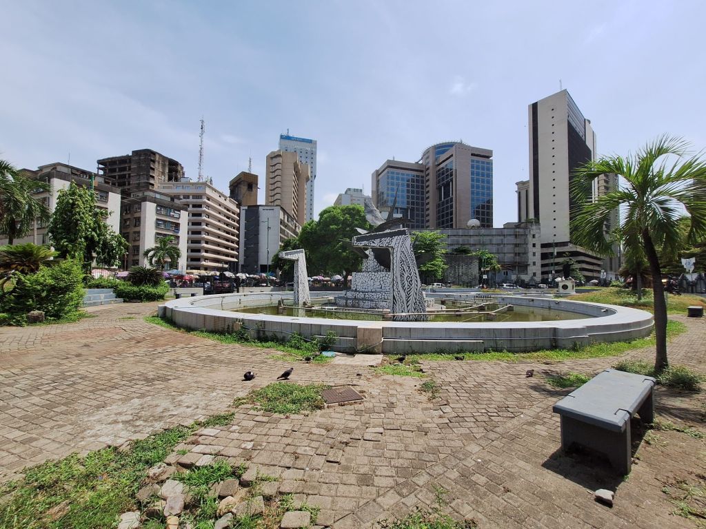 Ruhe ist natürlich immer relativ, waren wir doch gefühlt die einzigen Weißen auf weiter Flur und hatten dadurch eine gewisse Aufmerksamkeit einfach sicher. Wir gingen weiter zum Tinbu Square, quasi dem Hauptplatz auf der Insel mit Blick auf die modernen Bank- und Bürogebäude hier. Am selben Ort jedoch fanden sich jedoch auch verlassene und dadurch komplett verkommene Bauten – der Kontrast war mal wieder enorm.
