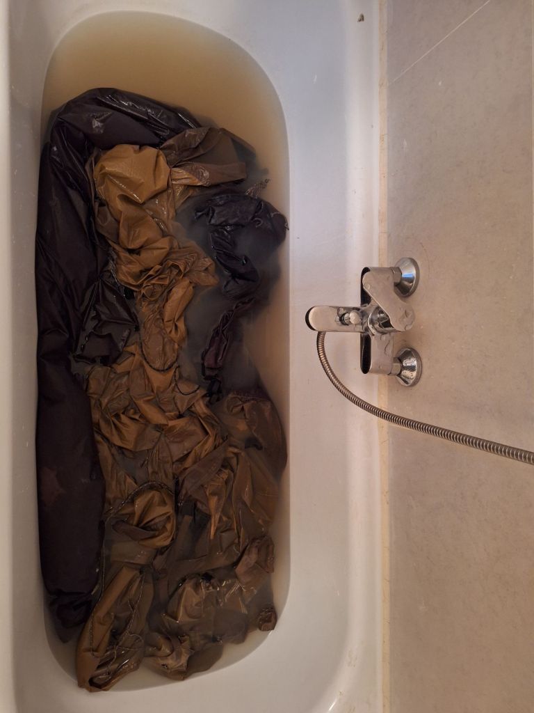 Der Vorteil war, dass unser Zimmer bei Robert eine Badewanne hatte. So konnte ich nach mehreren Monaten mal wieder mein durch Schweiß und anderen Dreck sehr mitgenommenes Zelt mal wieder auswaschen. Die schnelle Eintrübung des Badewannenwassers zeigte, wie dringend dieser Eingriff war.